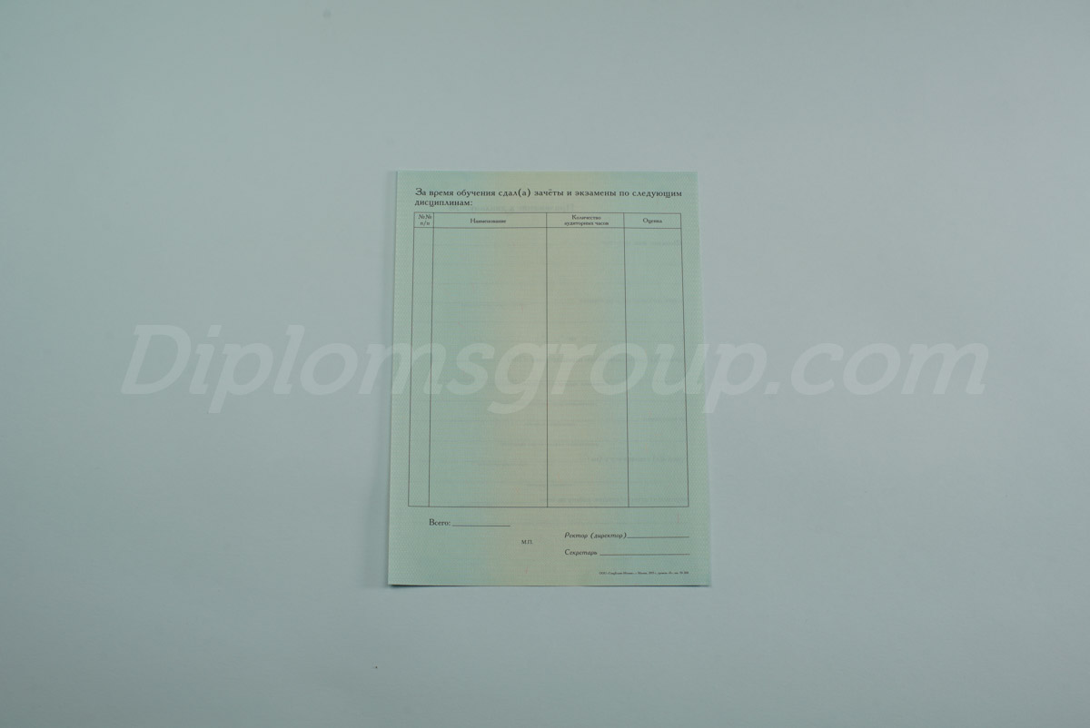 - Подбирают образец, соответствующий учебному заведению, а также периоду обучения заказчика